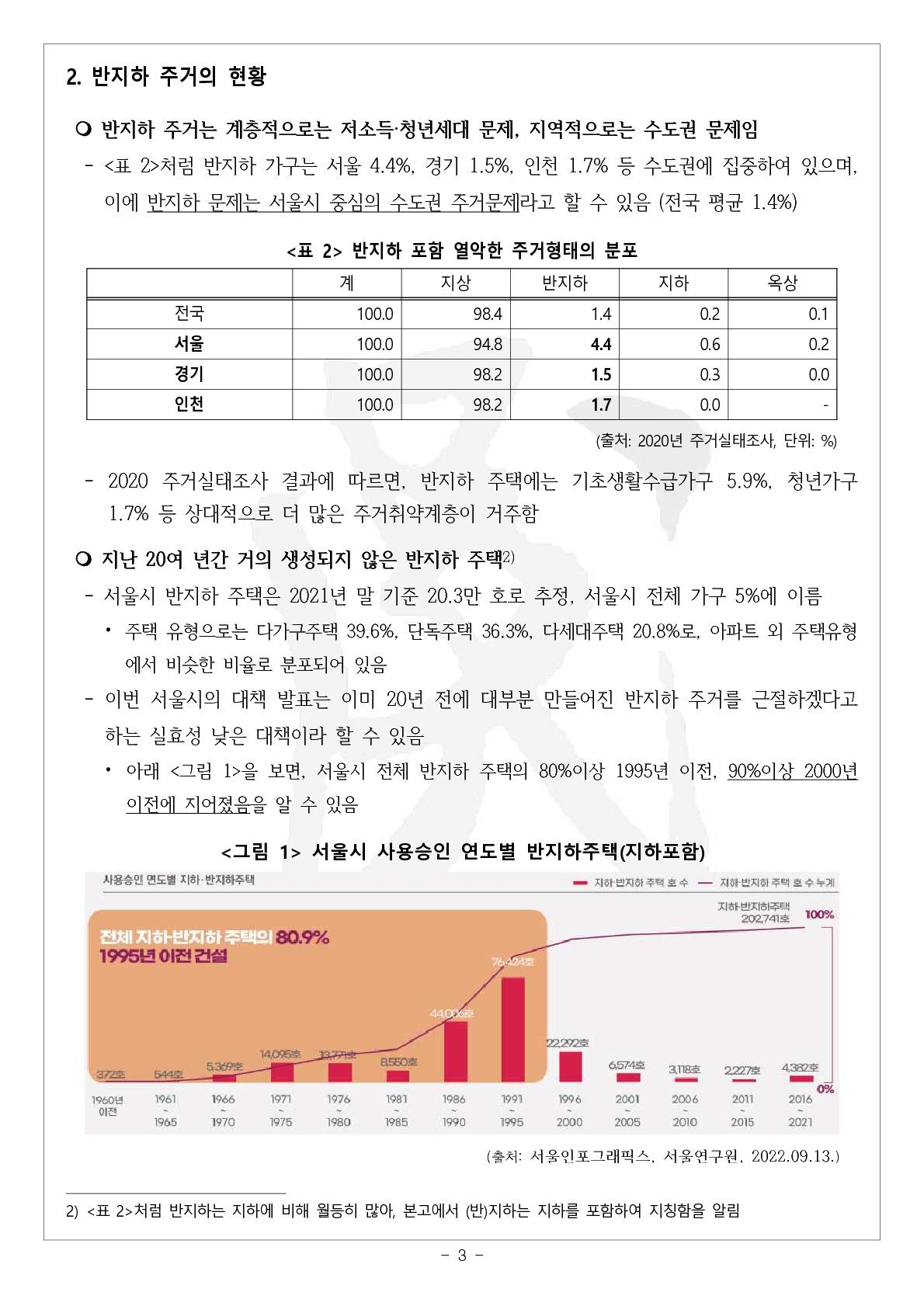 반지하 근절? 주민 내몰지 말고, 더불어 사는 기본주택 추진해야