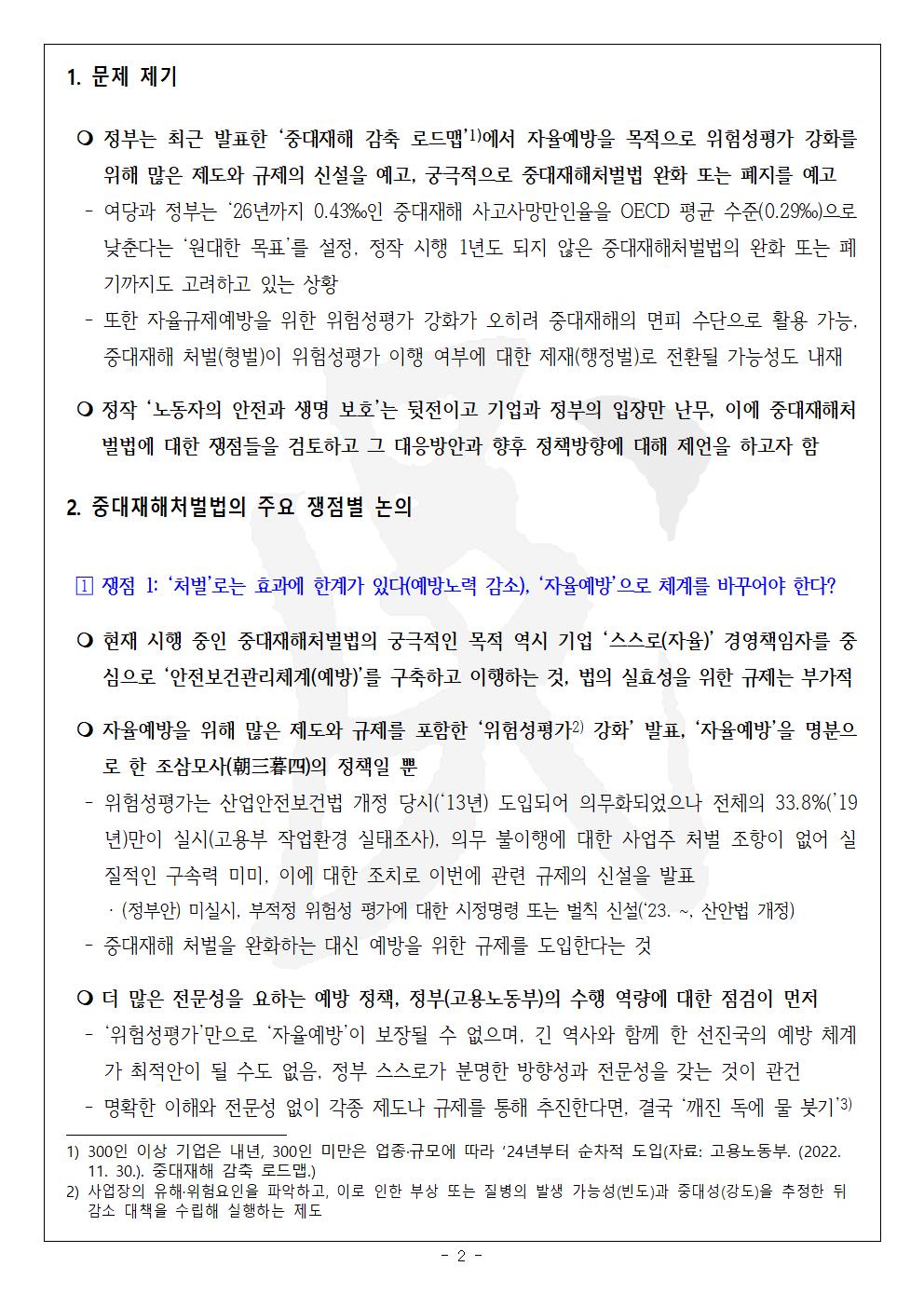 '안전하게 일할 권리' 외면하는 정부의 중대재해처벌법 완화 논쟁