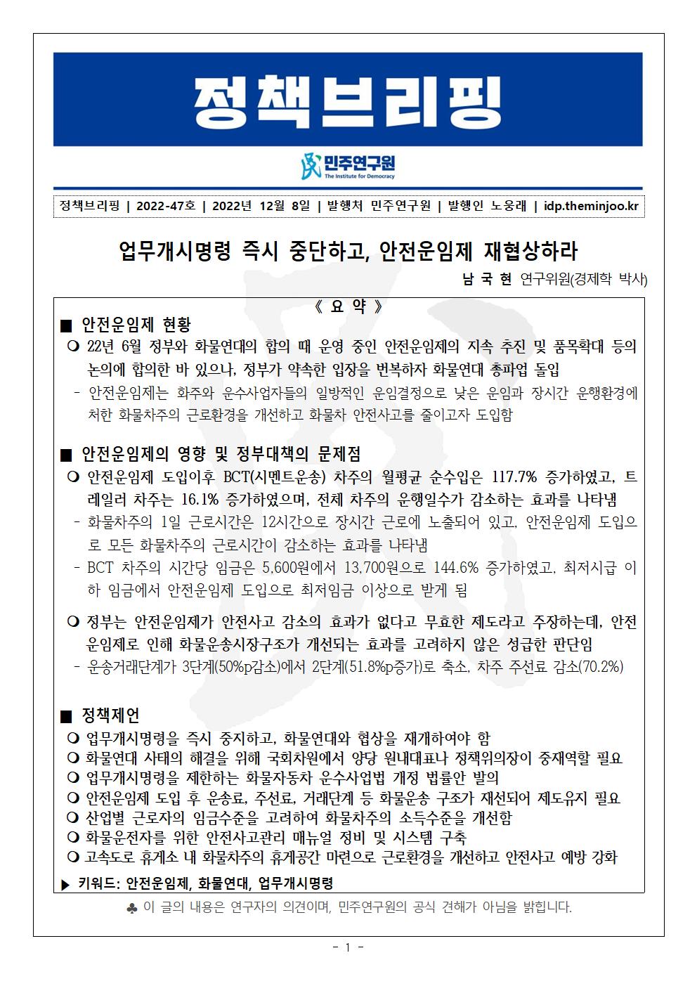 221208_민구연구원_정책브리핑_47호_업무개시명령_즉시_중단하고,_안전운임제_재협상하라_남국현.pdf