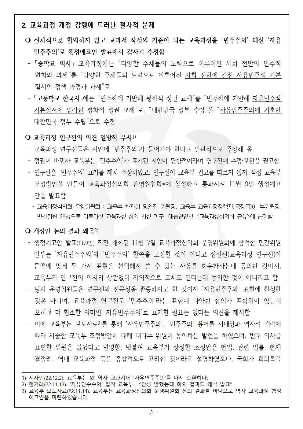 편향된 정치이념 교육하는 ‘자유민주주의’ 교육과정 개정 중단해야