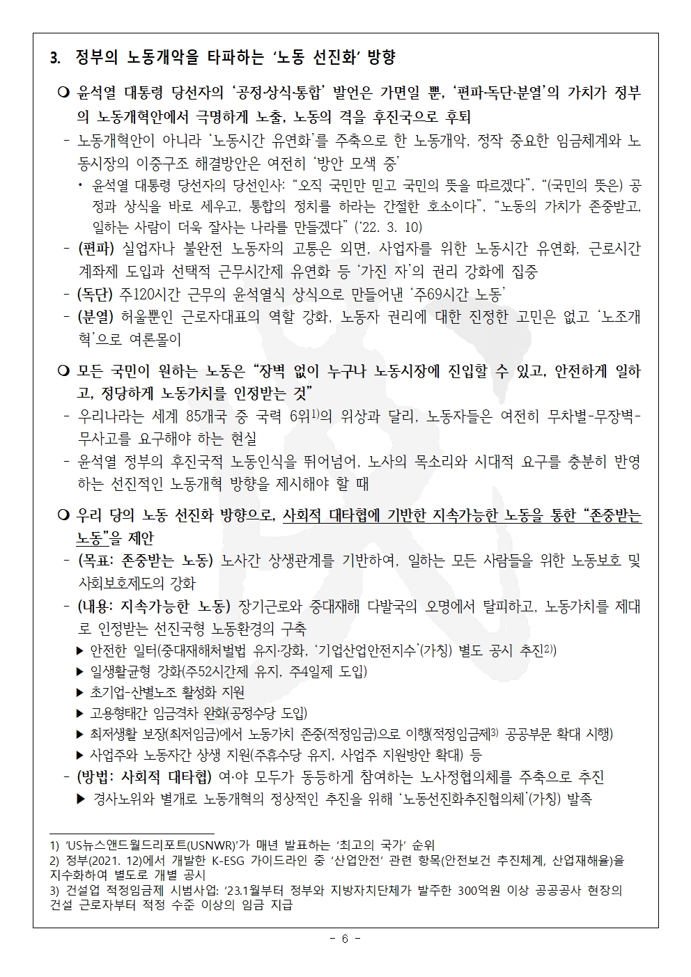 [2023-3호] 윤석열 정부의 편파, 독단, 분열의 노동개악