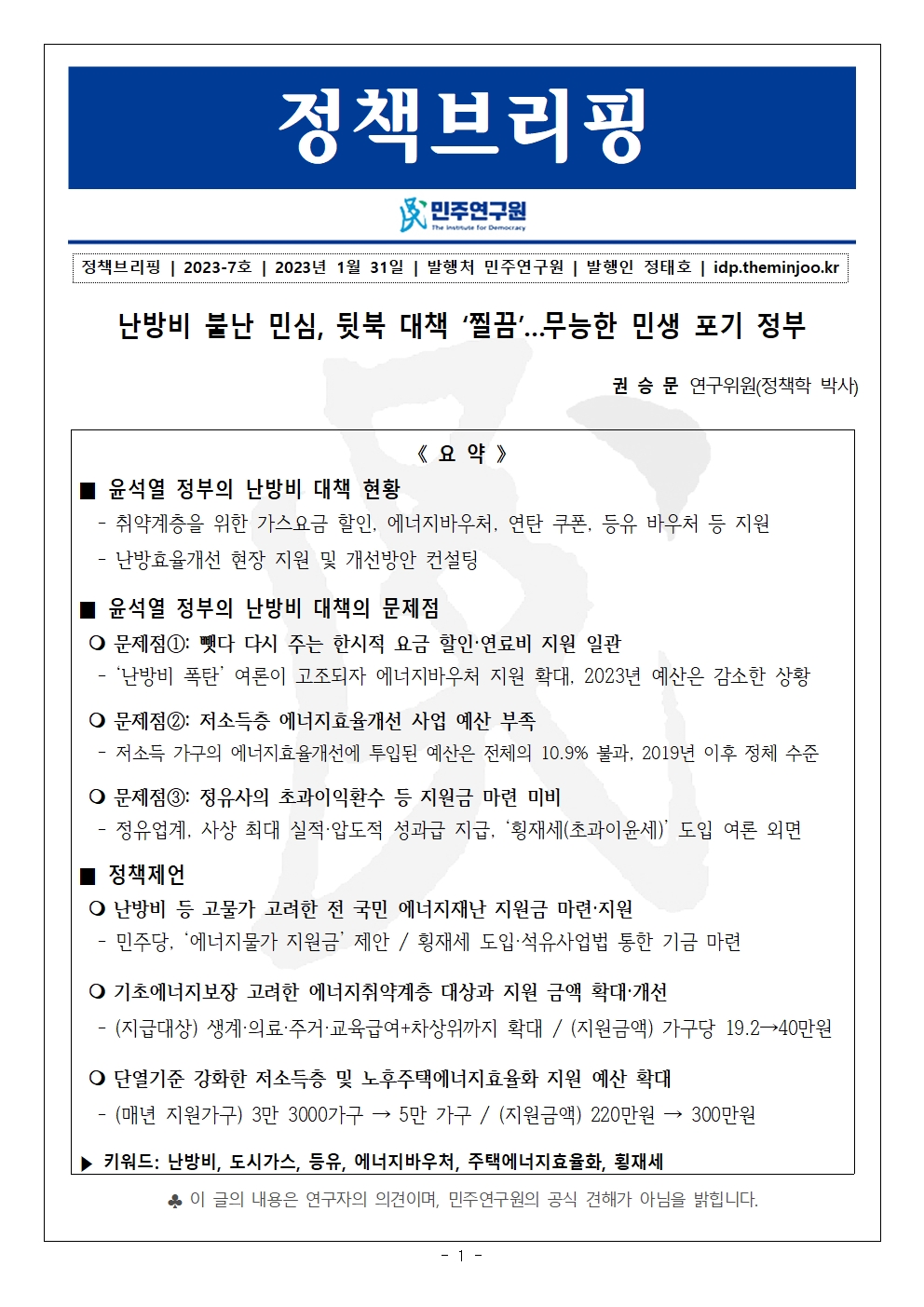230131_민주연구원_정책브리핑_7호_난방비_불난_민심,_뒷북_대책_‘찔끔’…무능한_민생_포기_정부.pdf