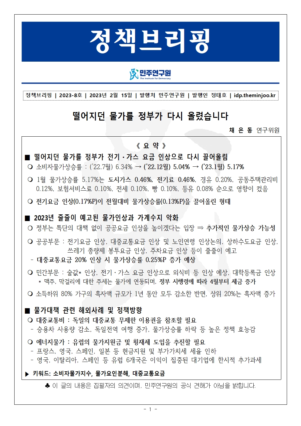 230215_민주연구원_정책브리핑_8호_떨어지던_물가를_정부가_다시_올렸습니다.pdf