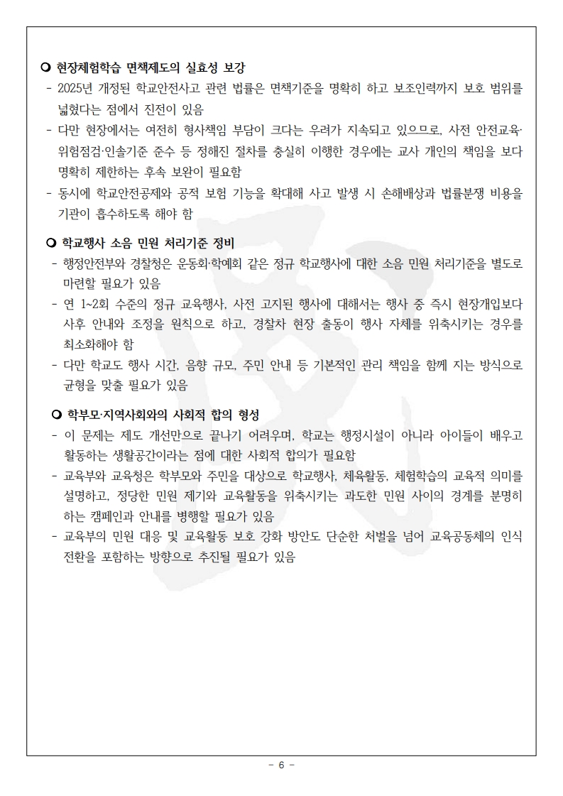 [2026-11호] 과도한 민원으로 위축된 학교 교육활동의 정상화 방안