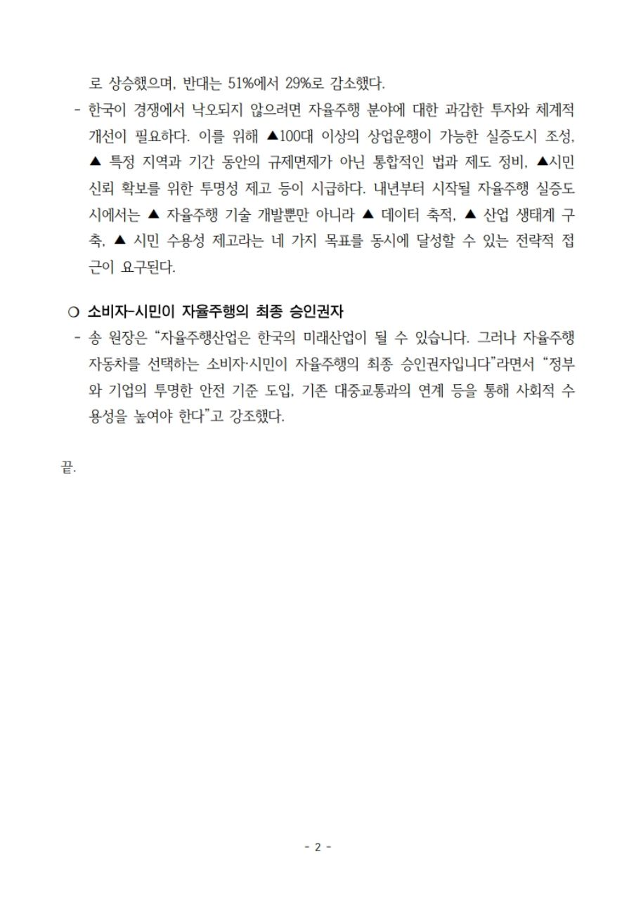 [보도자료] 정책브리핑 2025-10호 데이터가 경쟁력, 자율주행 실증도시에 대한 과감한 투자 필요