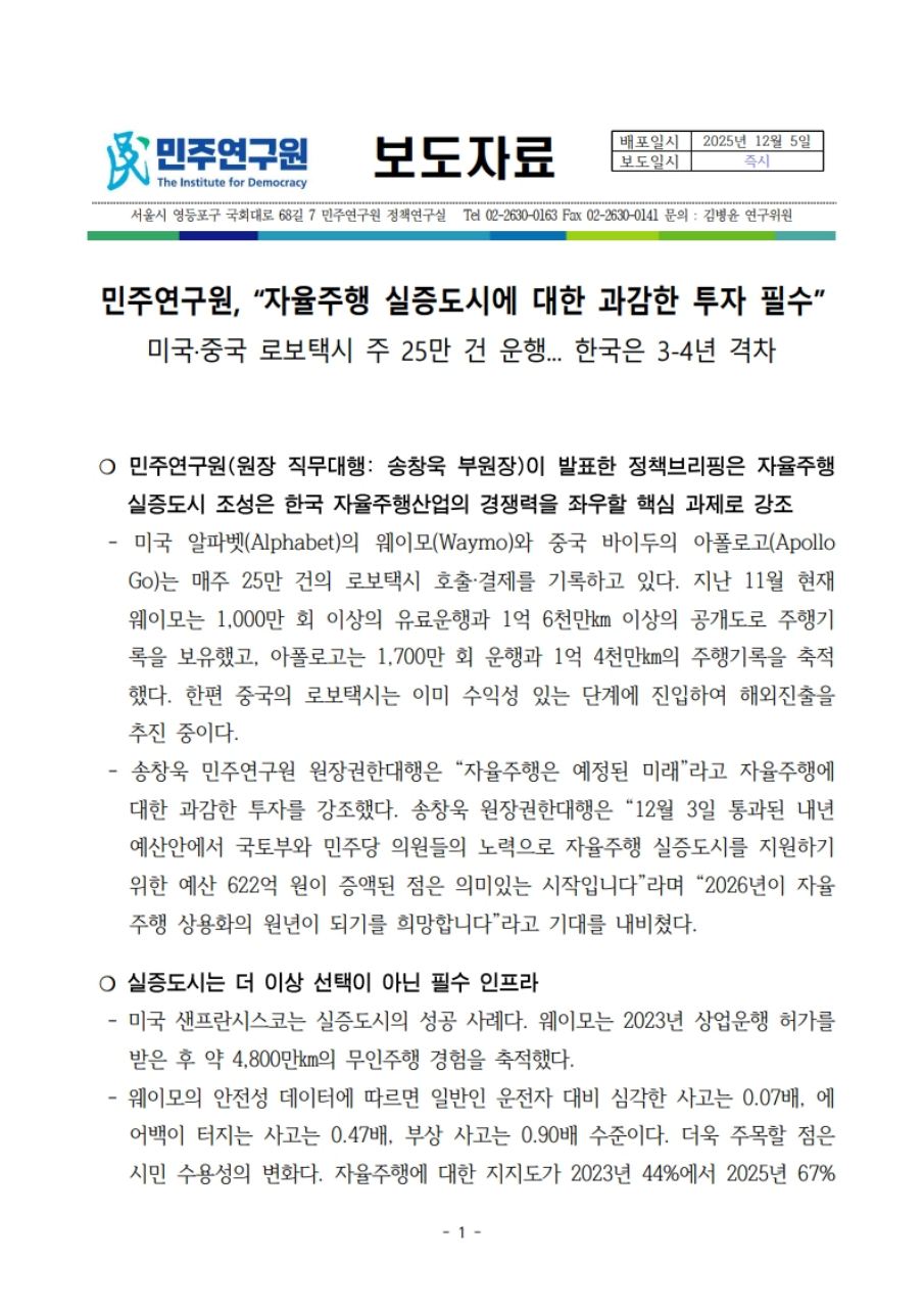 251205_민주연구원_보도자료_(정책브리핑 10호)_데이터가_경쟁력_자율주행_실증도시에_대한_과감한_투자_필요.pdf